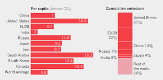 気候変動を否定する人たちは、他の国が行動を起こしていないので、私たちは行動を起こせないと主張します。 しかし、現在の気候変動を引き起こしているすべての国が同じように罪を犯しているわけではありません。 例えば、人間が作り出した大気中のCO₂の25%はアメリカが作り出しており、さらに22%はEUが作り出しています。